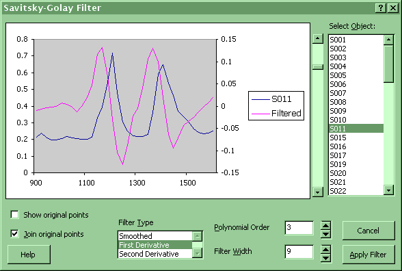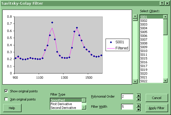 Interactive Savitsky-Golay Filter: choose filter