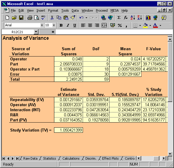 also generates a fully linked ANOVA worksheet and the output for the AIAG data