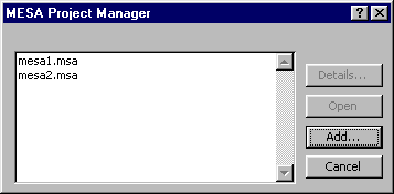The Project Manager is used in all of our applications and helps keeps track of all your Mesa files: It simply provides a convenient repository for the summary information associated with any Excel workbook.