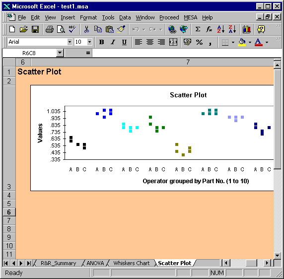 In the Scatter Plot the values are grouped by part number, e.g. all of the