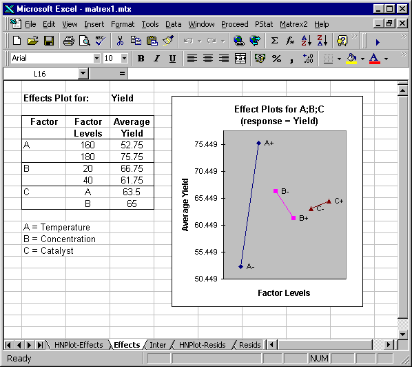 These plots provide the simplest analysis technique in experimental design: they are simply plots of the average values of the response at each level of a particular factor.